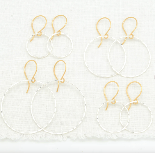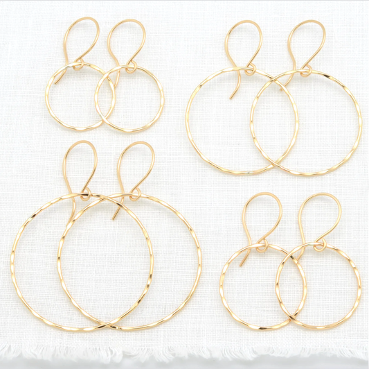 Handmade in Portland, Oregon, A Stone's Throw offers hypoallergenic jewelry made with Sterling Silver, 14k Gold Filled, or Solid 14k Gold, that will bring joy for years to come. Notice how our signature hand-hammering plays with light, bringing more movement and joy to every pair of earrings.