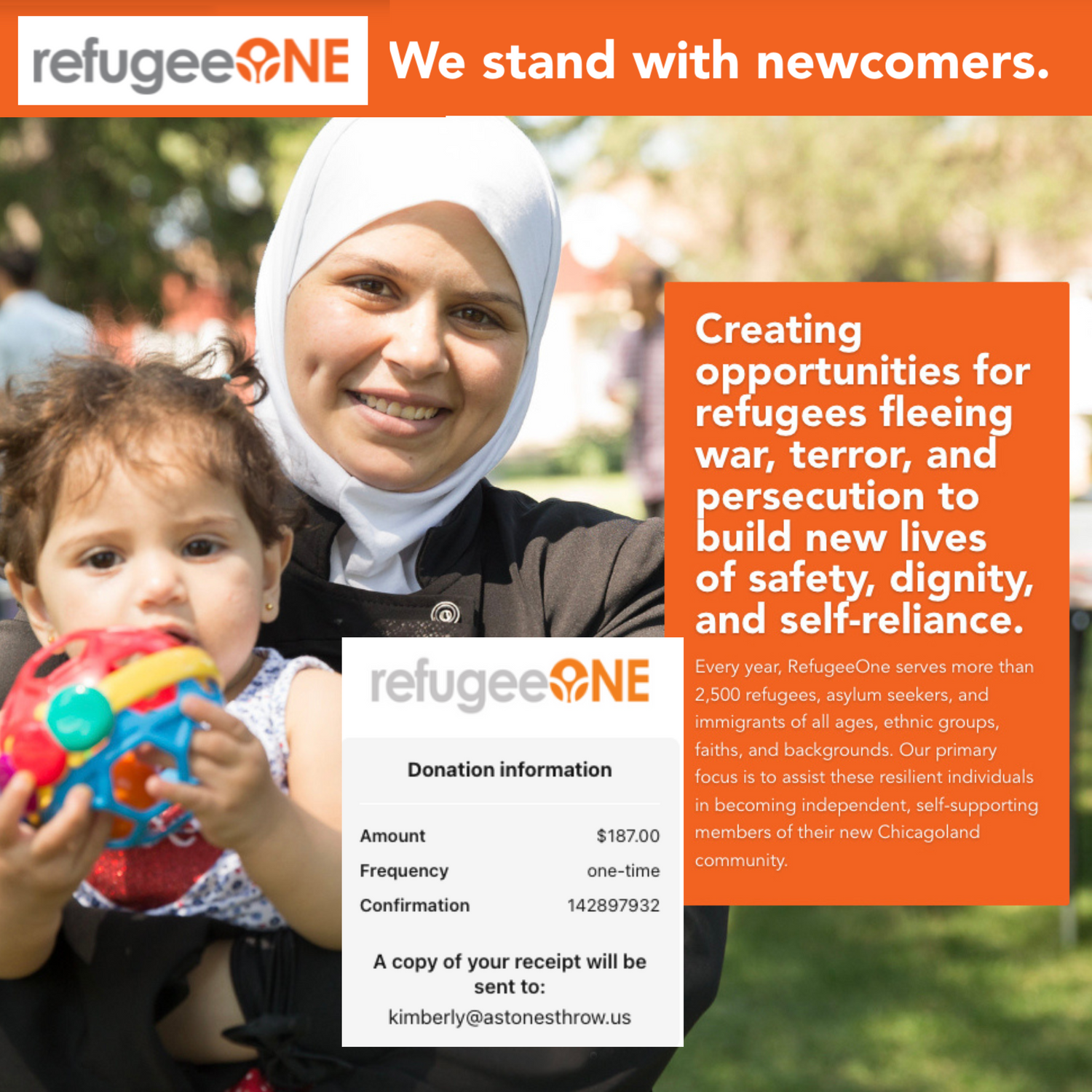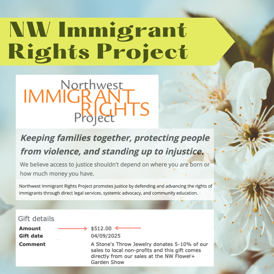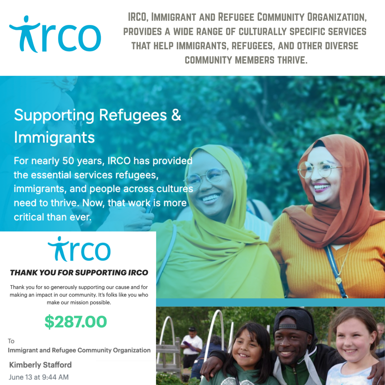 We at A Stone's Throw recognize the great privilege we enjoy at being born into the lives we inhabit and we support the work of nonprofits who help people fleeing circumstances we cannot imagine. IRCO helps newly arrived peoples foster self-sufficient lifestyles and community engagement.This $287 gift comes from our April 2025 sales.