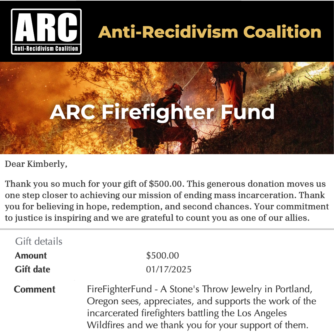 During our 4-week Los Angeles Wildfires Fundraiser, we sent more than $4,500 to three different non-profits. This donation supporting incarcerated firefighters was made possible by the generosity of an Angel Donor. Thank you!