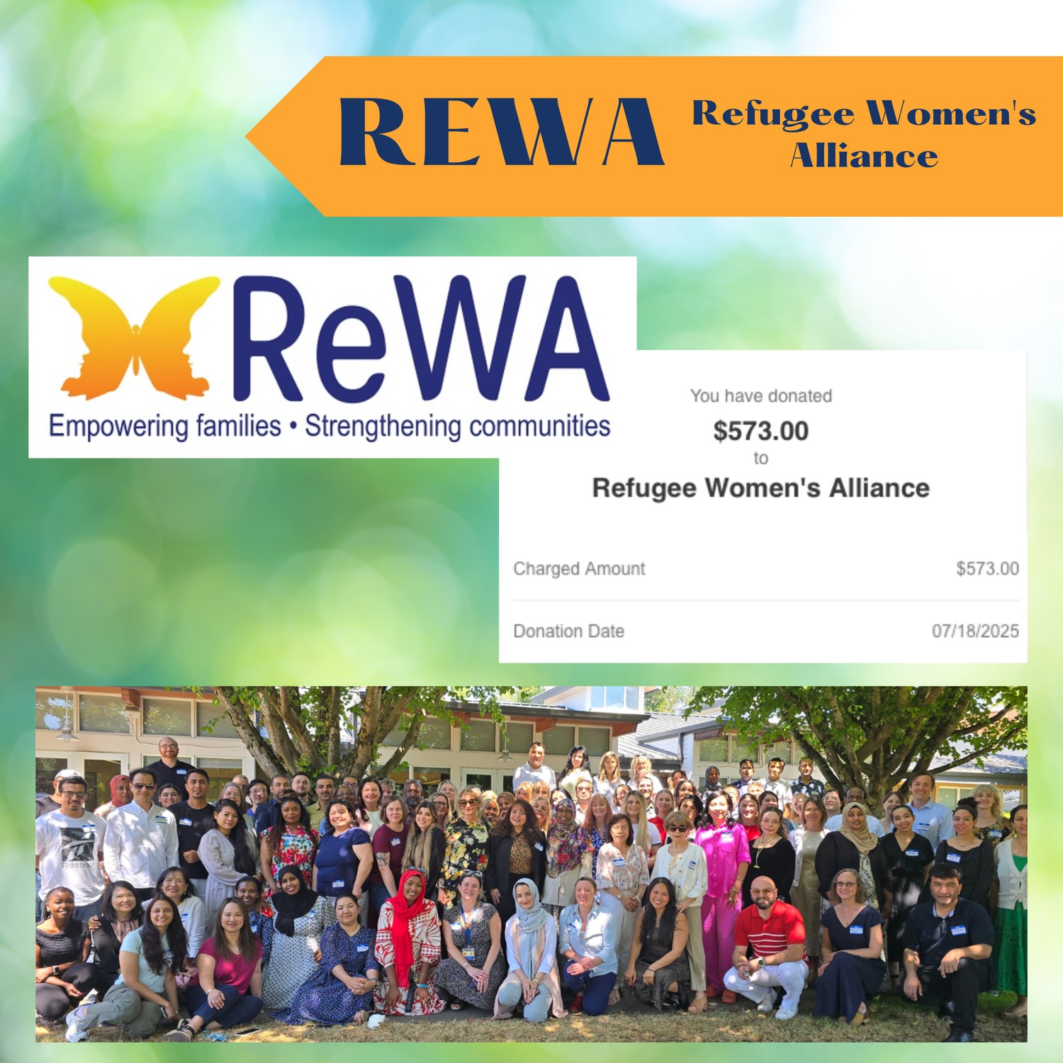 ReWA provides social services such as english classes, employment, housing, and citizenship advocacy for every member of the family in over 50 languages and dialects. This donation is from our weekend West Seattle Summer Fest where clients helped us send more than $1k to ReWA and King County CASA.