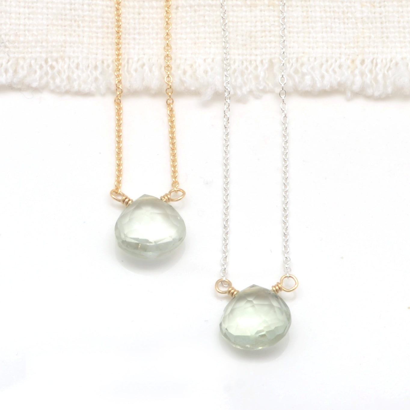 Few people know about Minty Amethyst - the delicately-hued sister of Purple Amethyst. Many would venture to say that this February birthstone option is a more versatile version of it's plum relative. These tears on Sterling Silver or 14k Gold Filled chain make for easy gifting for the February birthday girls and boys on your list!