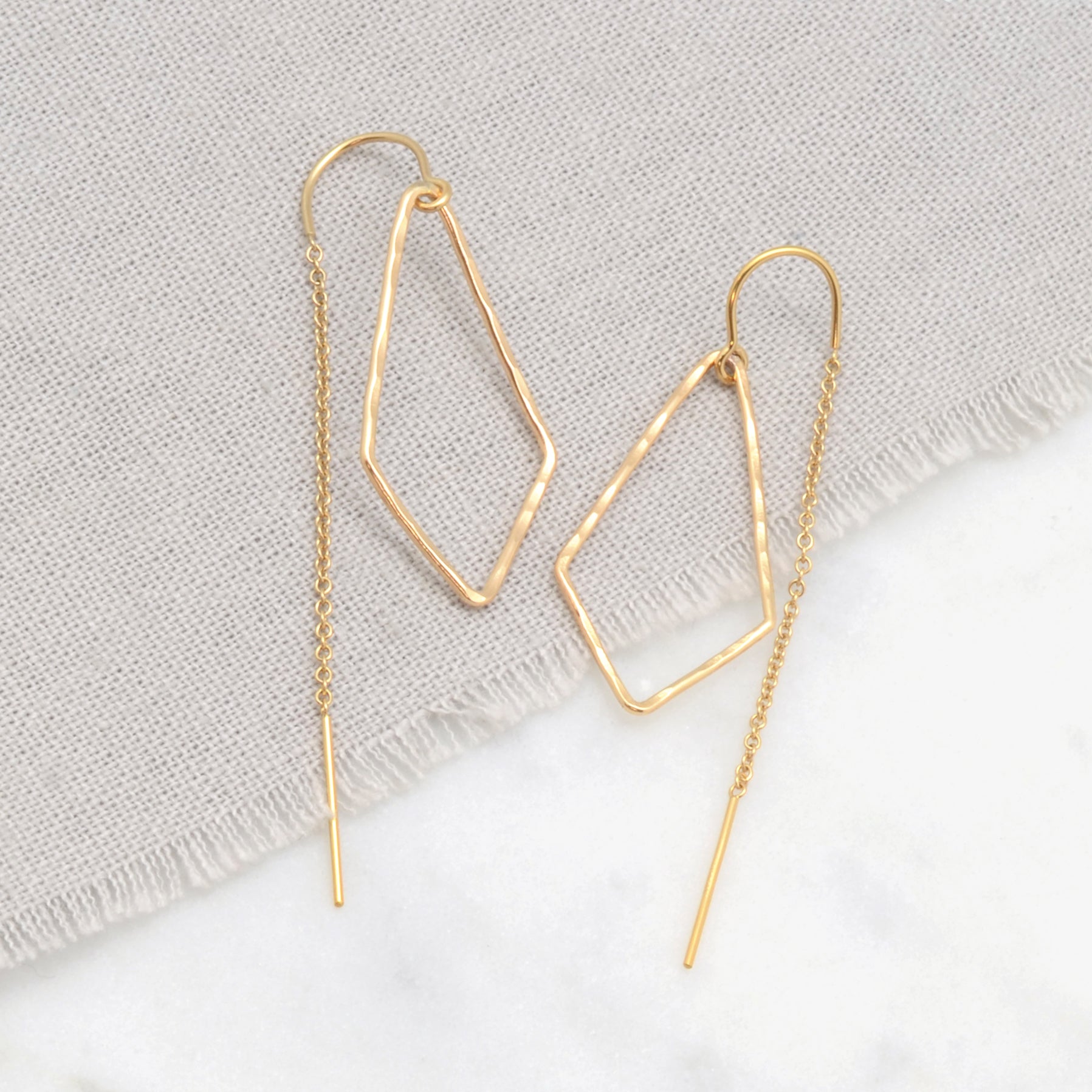 Hand-Hammered 1" Asymmetric Kites fly pretty on 14k Gold Filled or Silver Chain Threader Earwires. Sleek, modern, and even a tad bold, while still elegant. Some love to wear these asymmetrically - with one kite facing upward and the other one upside down. #options.