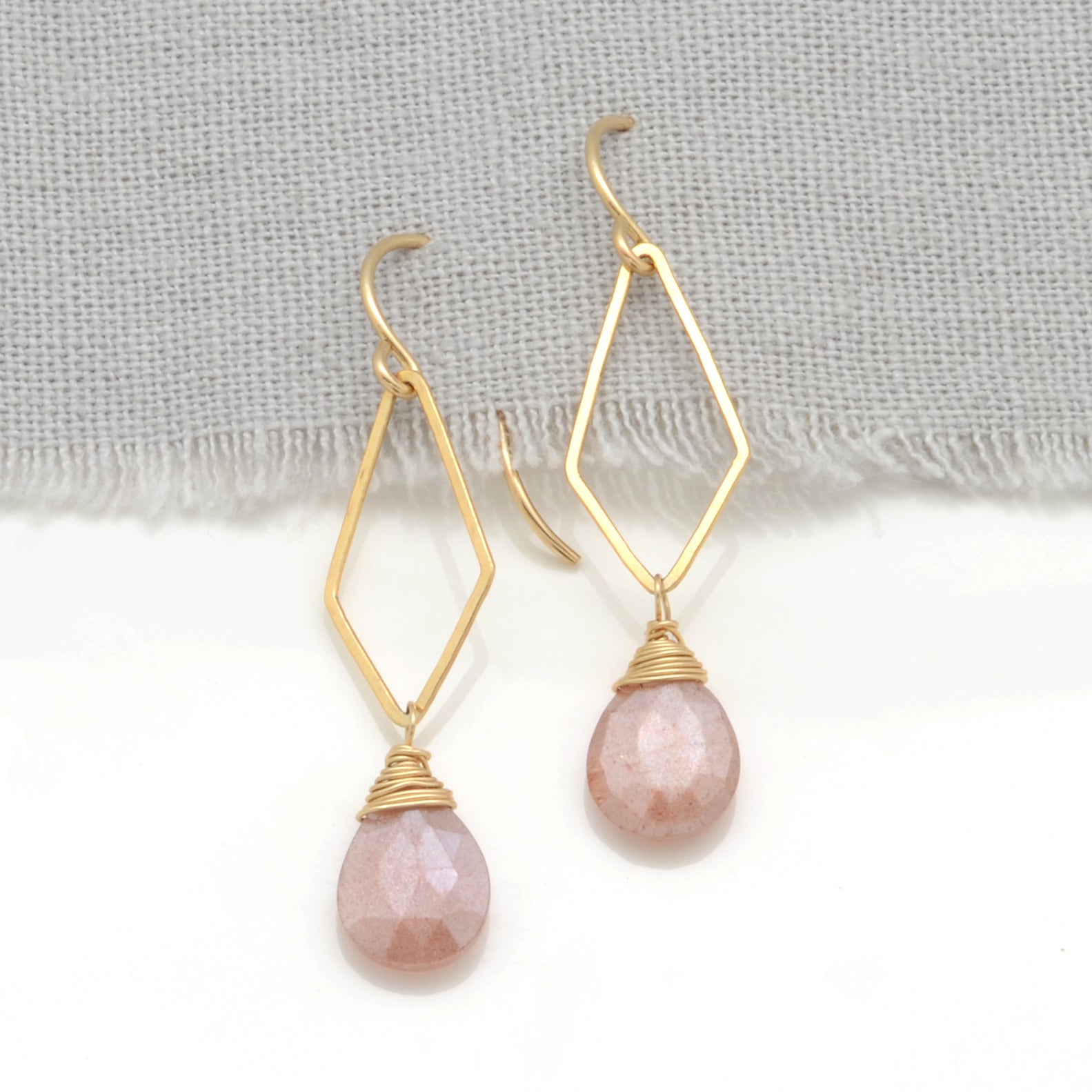 Blush Pink Australian Moonstone Tears on flat 5/8" asymmetrical kites. Total drop of just under 1.5".