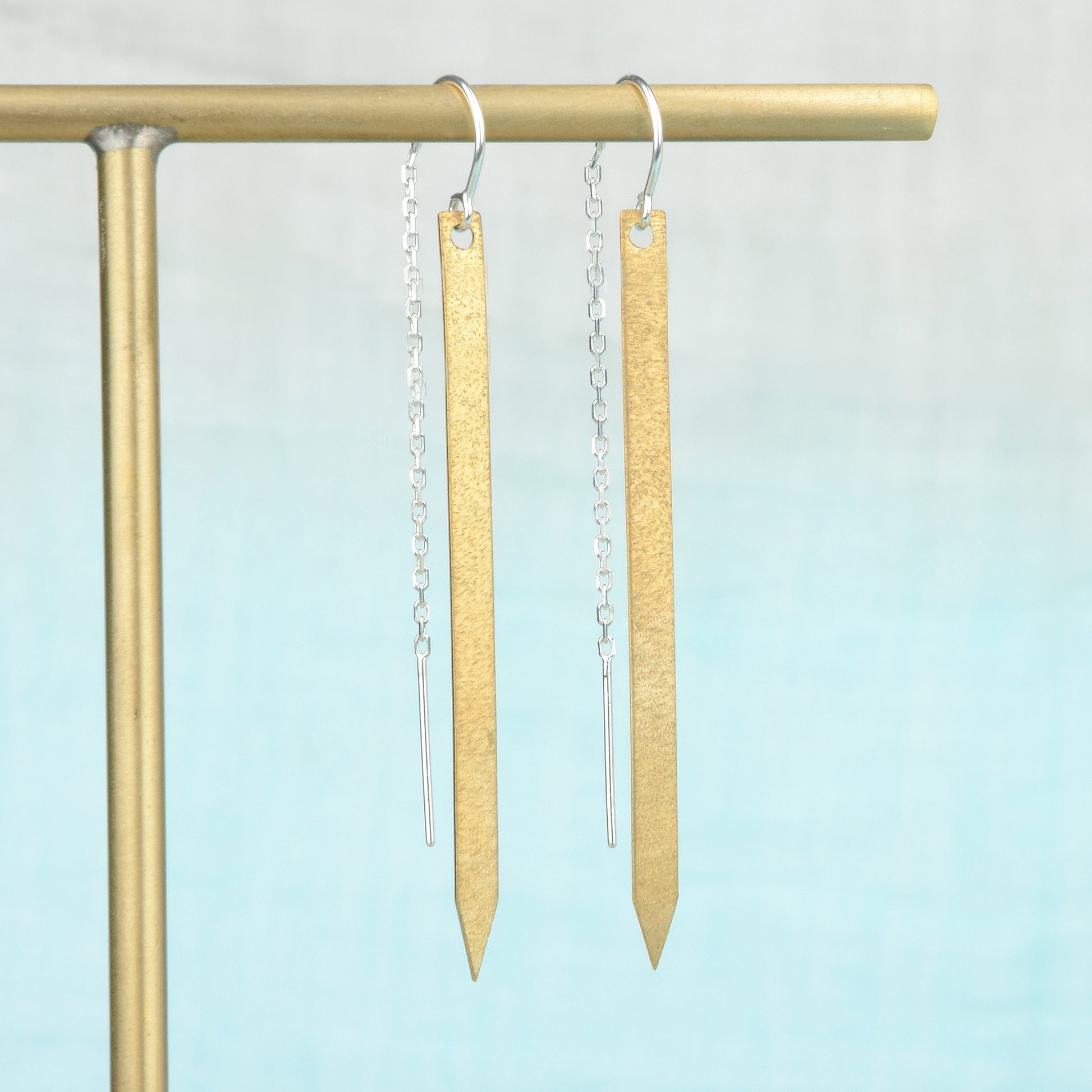 2" Brass Spears on Sterling Silver Threader or 14k Gold Filled Threader earwires. Elegant, dramatic, versatile.