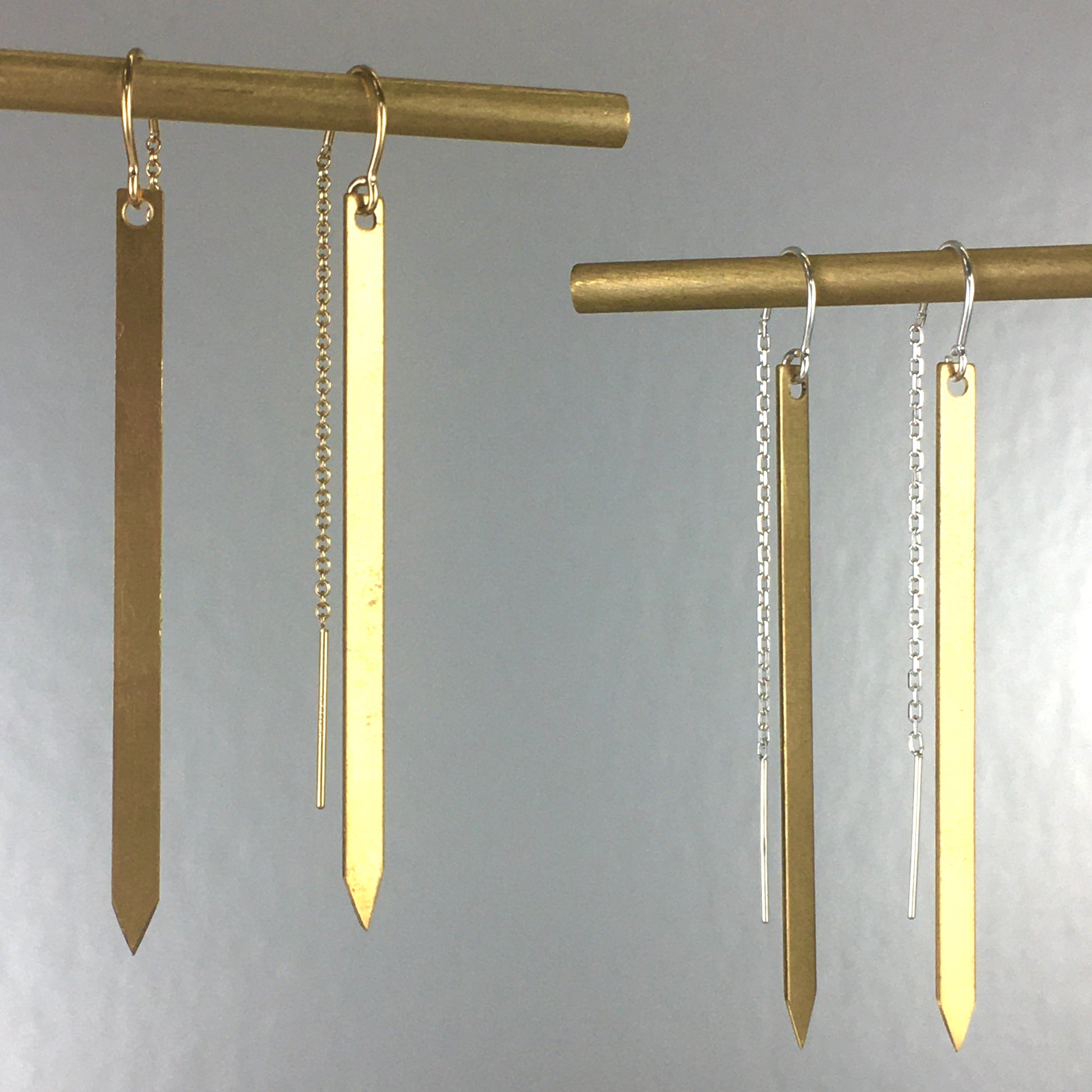 Our Brassy Spears are available with 14k Gold Filled or Sterling Silver earwires.