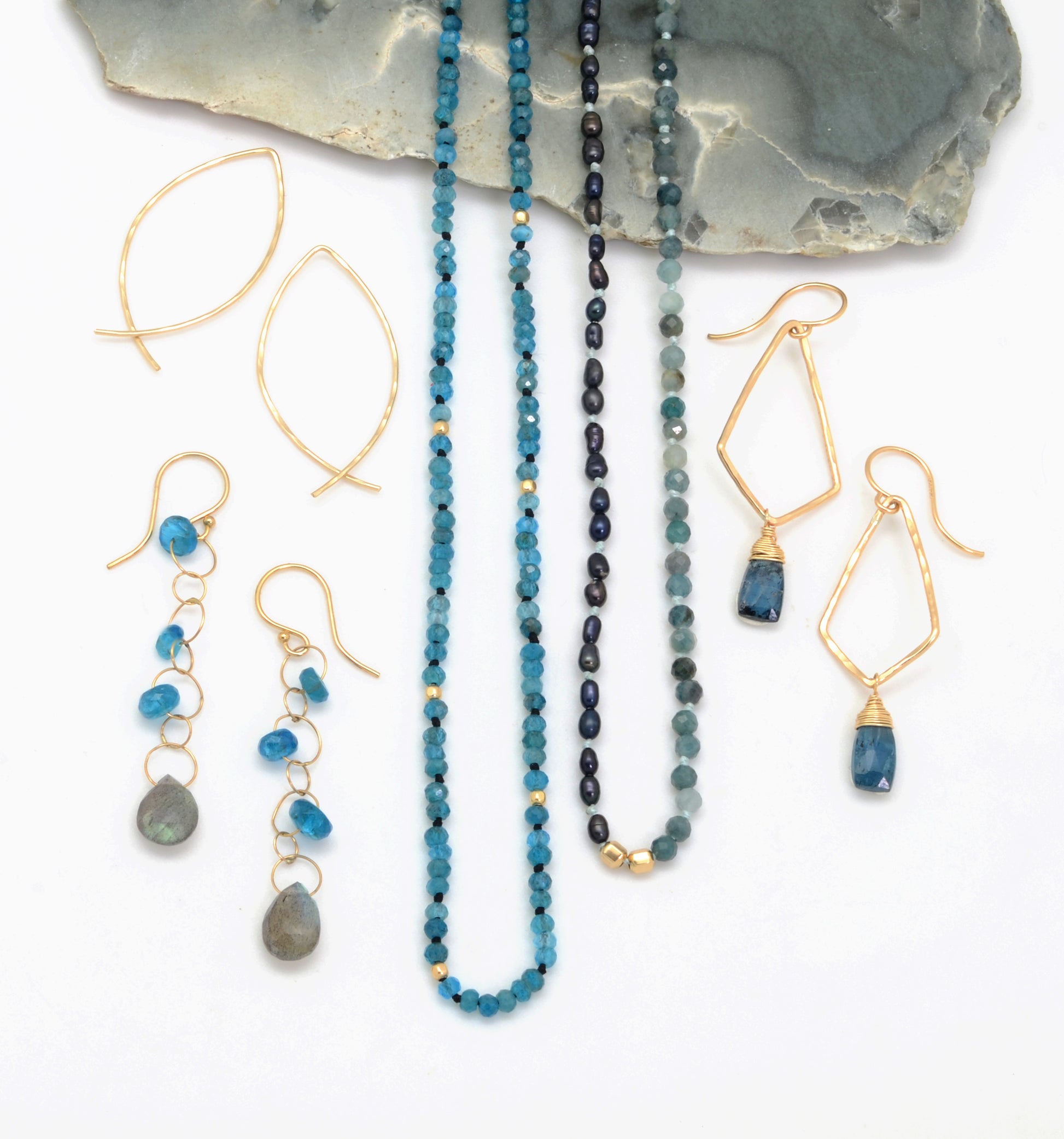 Available in two sizes in 14k Gold Filled and Sterling Silver. (Our Large pair is shown here with our Apatite collection.)
