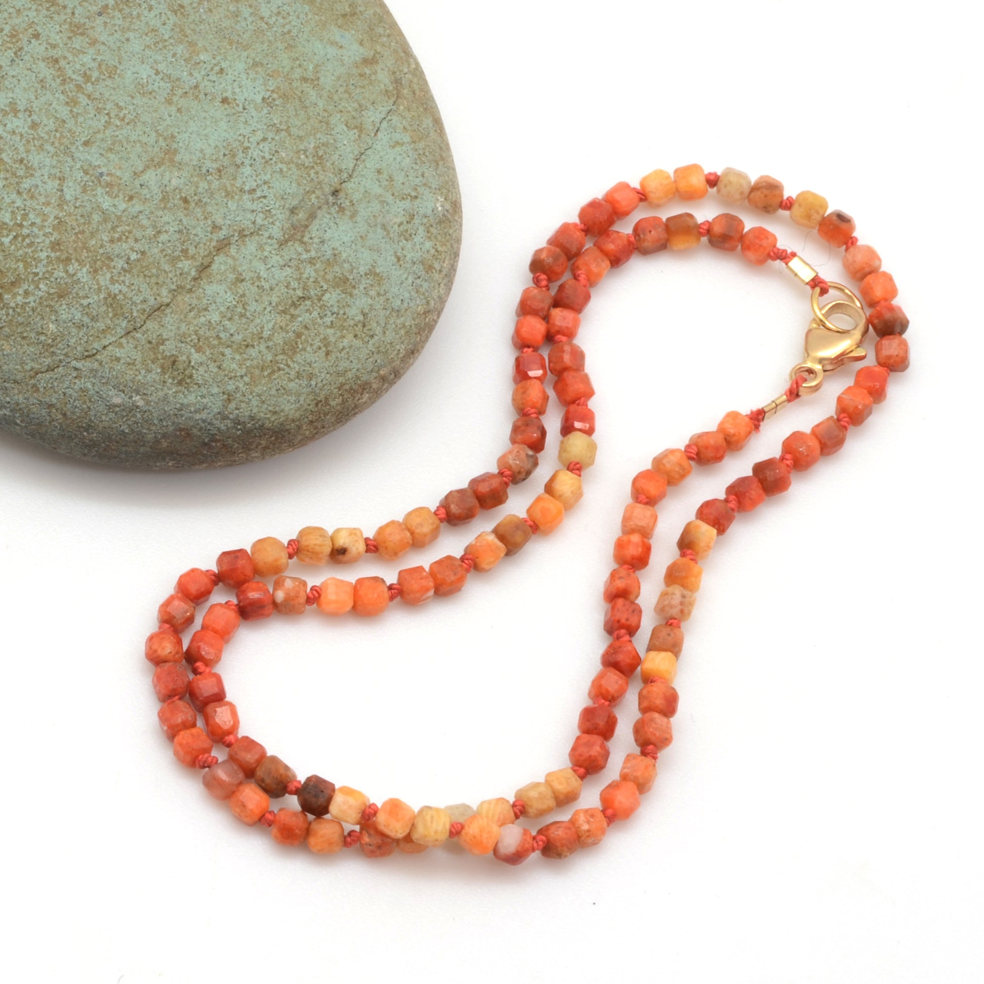Our Coral Cubes "Convertible" is 14" in length, which makes for a fabulous doubled-over bracelet AND can also be worn as a cute choker. When paired with one of our extension clasps, you'll be able to wear this as a 17" necklace.