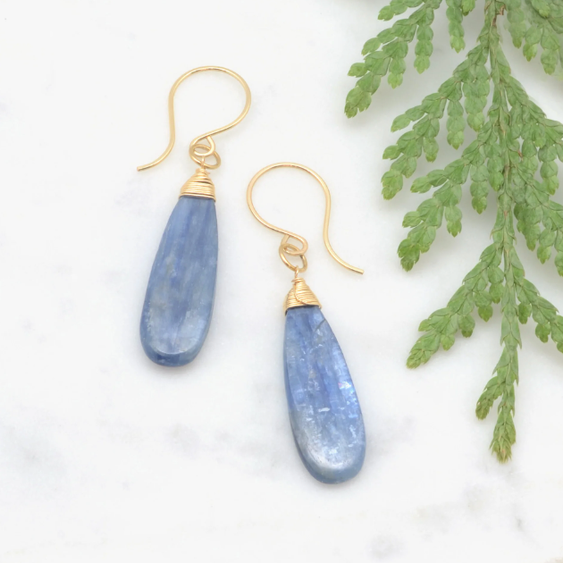 When these Kyanite tears found their way into our hands it was love at first sight! The tears are just shy of 1.25" and the total earring length, on our hand-crafted chubby swoop earwires is about 2"