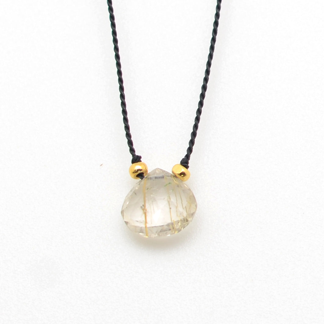Gold Rutilated Quartz can clear energy blockages of all the chakras and helps to strengthen your willpower and motivation. (Another winner in my book!) I love that it has little bolts of gold magic inside! Our standard length for this style is 16", but if you'd like a different length, just request in comments. Available on Brown or Black Silk.