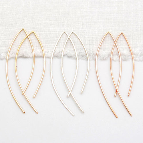 These elegant 2.5" curved spears can be worn either way, but we love them best with the long end peeking out from the back! Sleek, modern, minimalist.