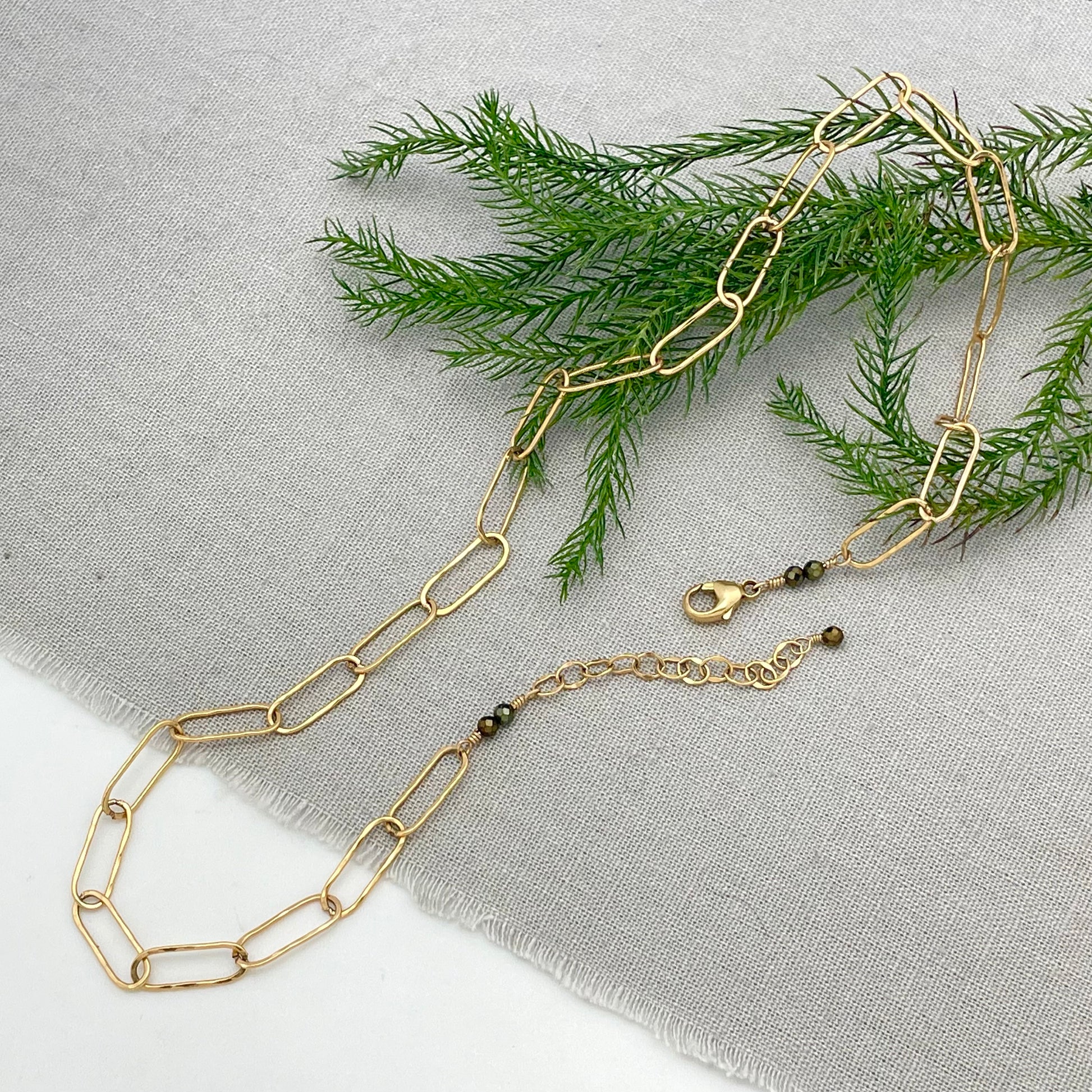 Bold, hammered 14k Gold Filled links, with an adjustable length, our Harriet necklace is part of our Necklaces That Persist link, which honors women's perseverance and contributions to the common good of our country.