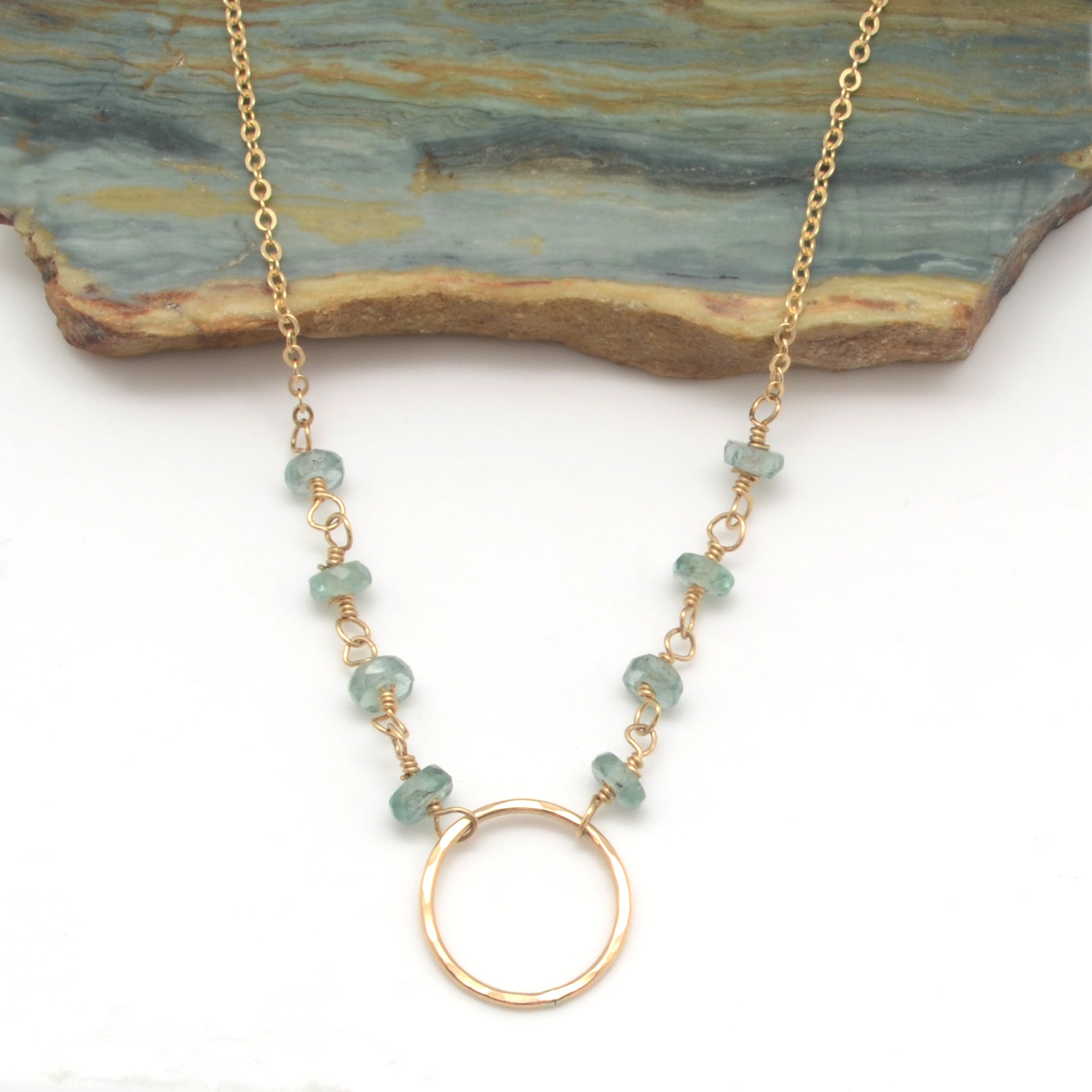 8 minty Green Kyanite hug a Hand-Hammered 14k Gold Filled or Sterling Silver Circle.