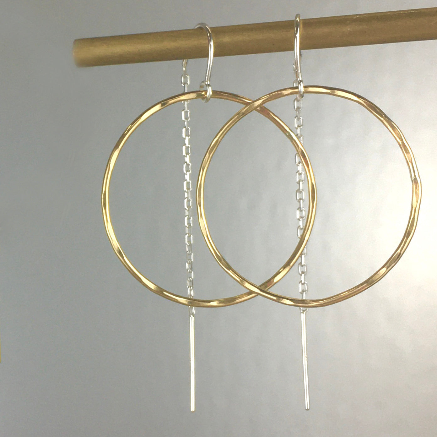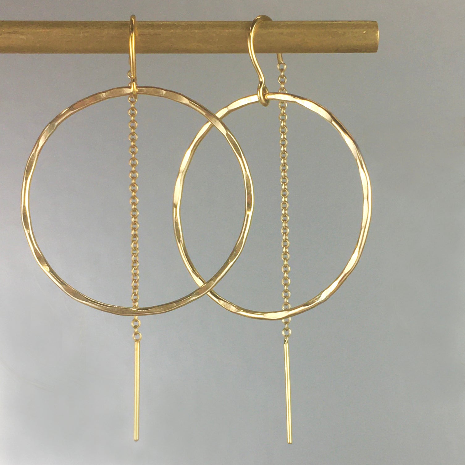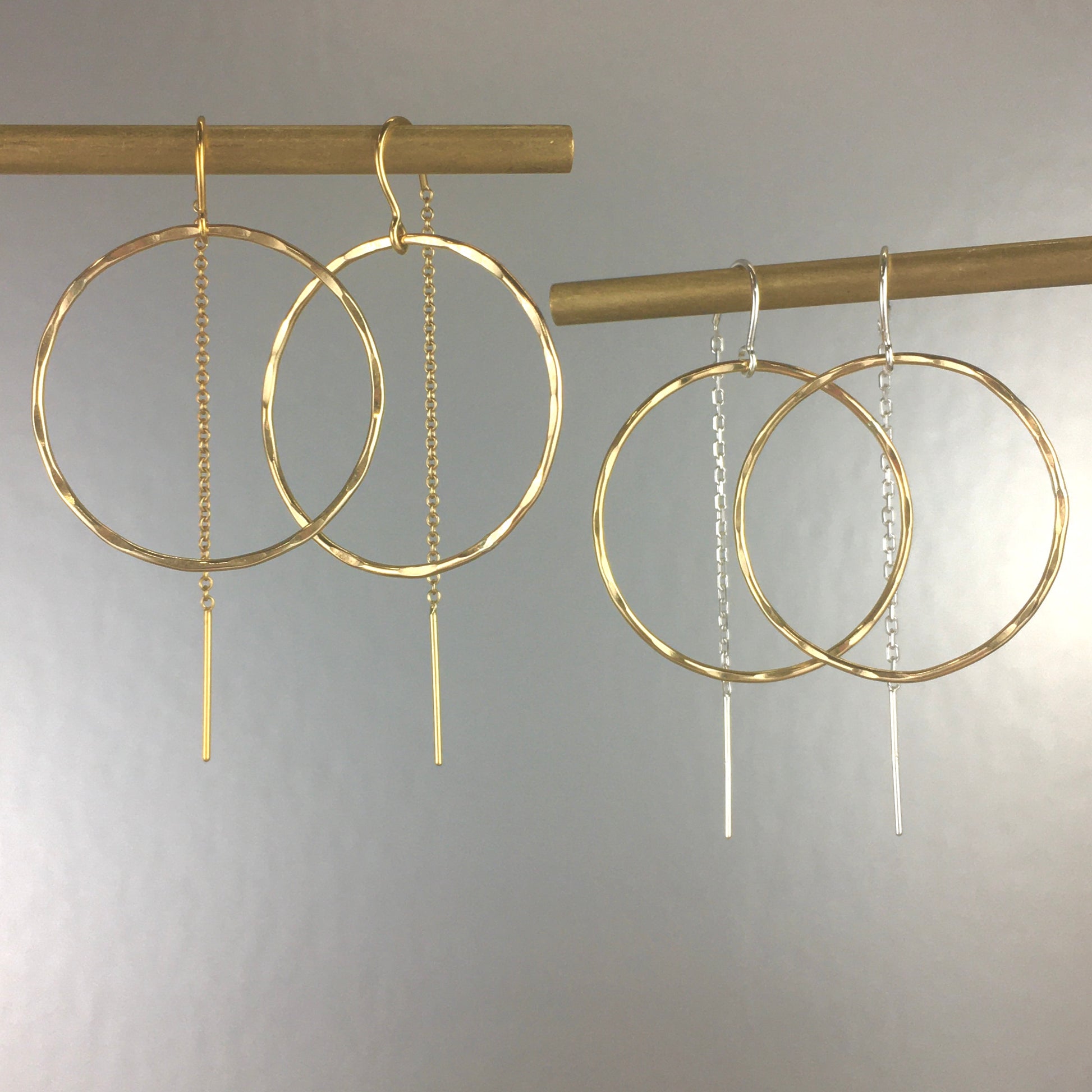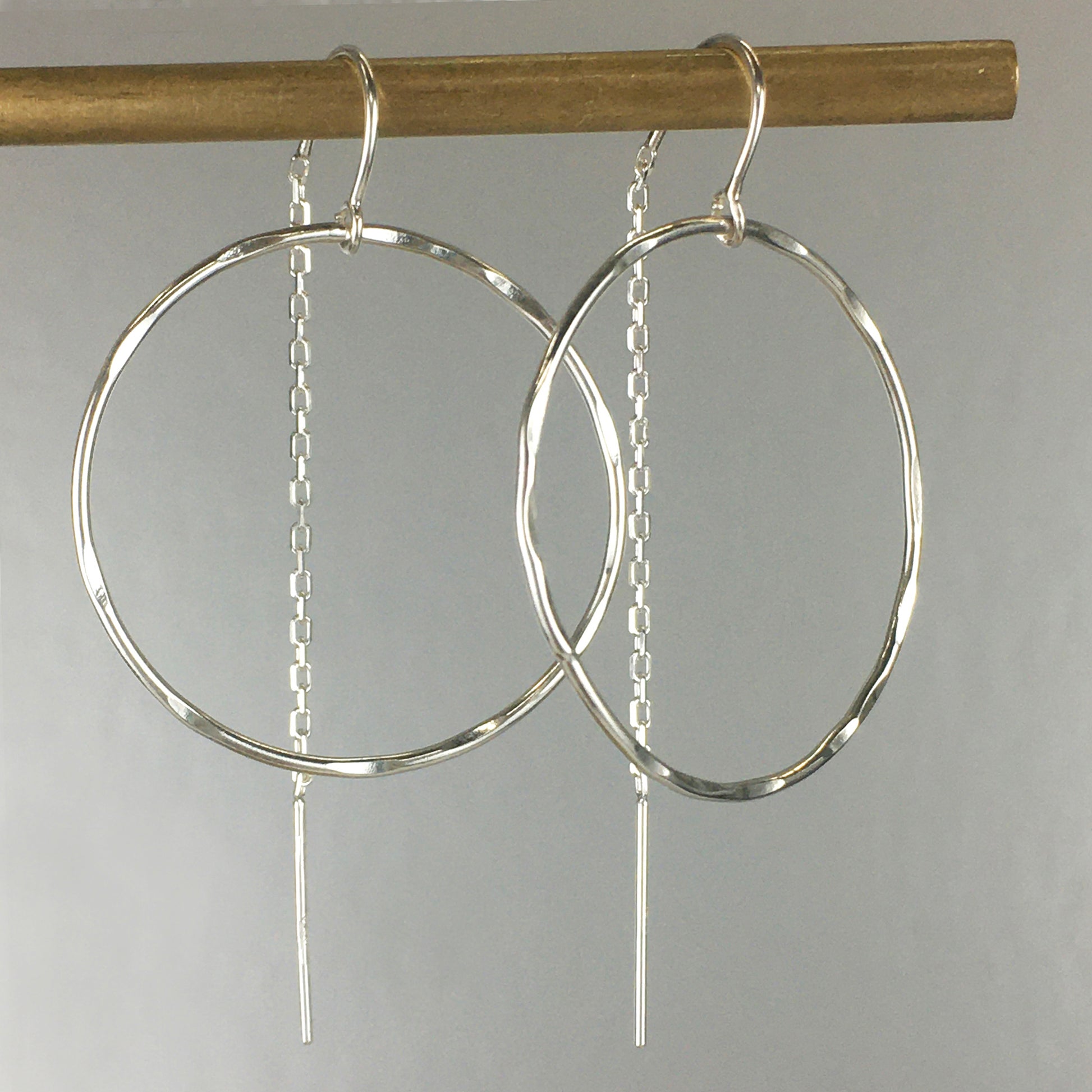 Hand-Hammered 1" Hoops swing from on 2.25" Chain Threader Earwires.