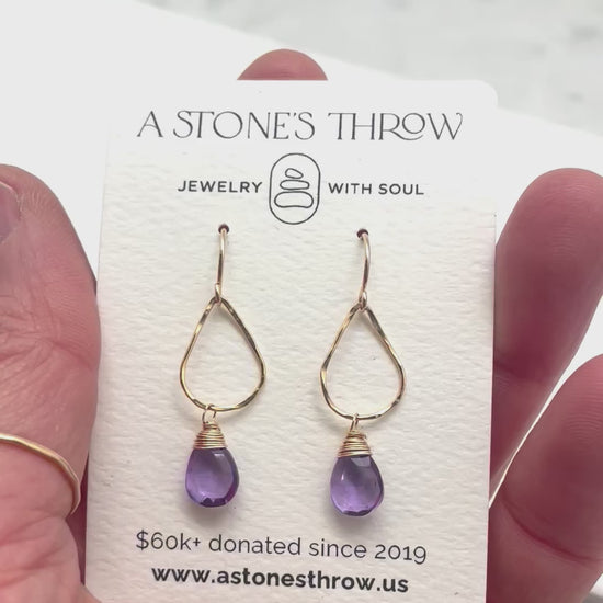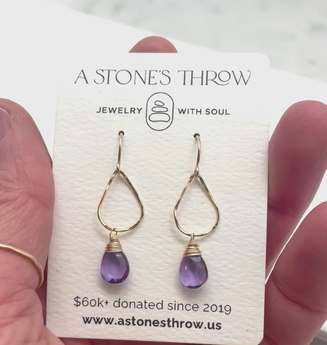 Rich Purple Amethyst tears set on hand-hammered 14k Gold Filled or Sterling tears.