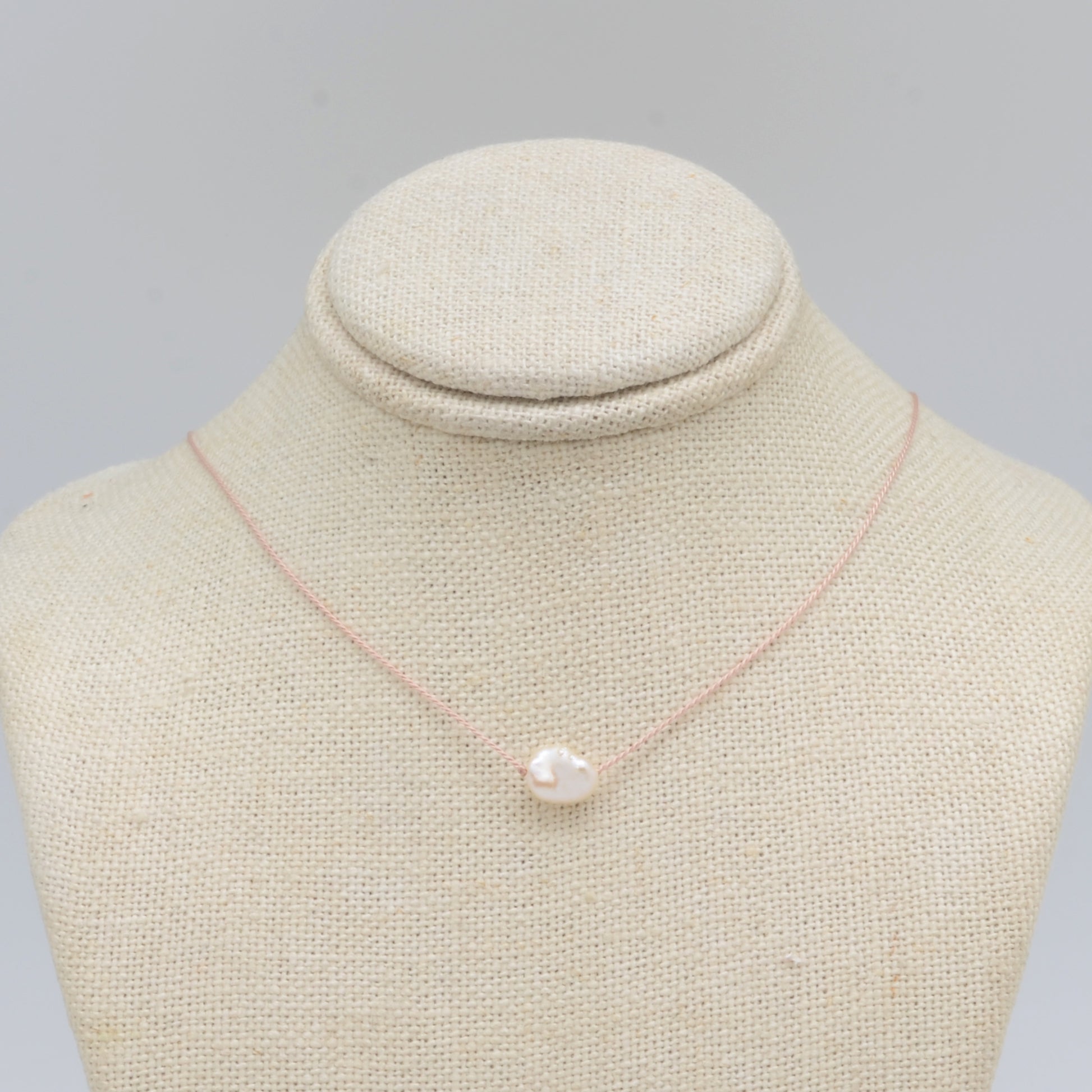 Baroque Freshwater Pearls each have unique twists and turns and they are our favorite type of Pearl to design with. We always select Pearls with great nacre (nacre is the glossy luster, brightness and iridescence of a Pearl, that is formed when a mollusk works to encapsulate and irritant). We are offering this necklace on Shell Pink silk..